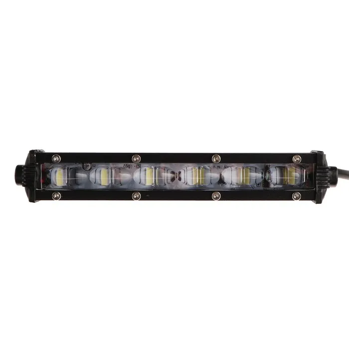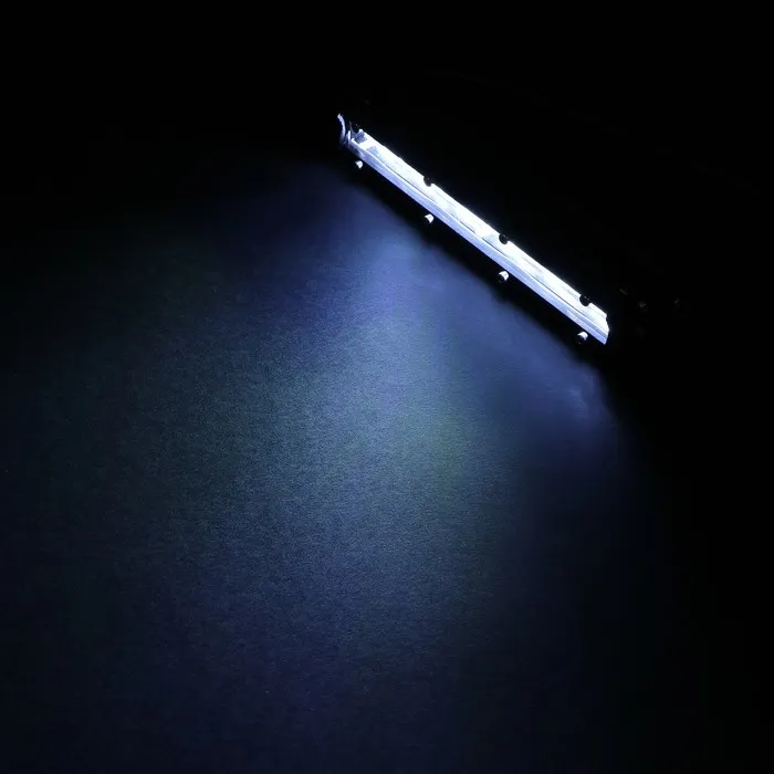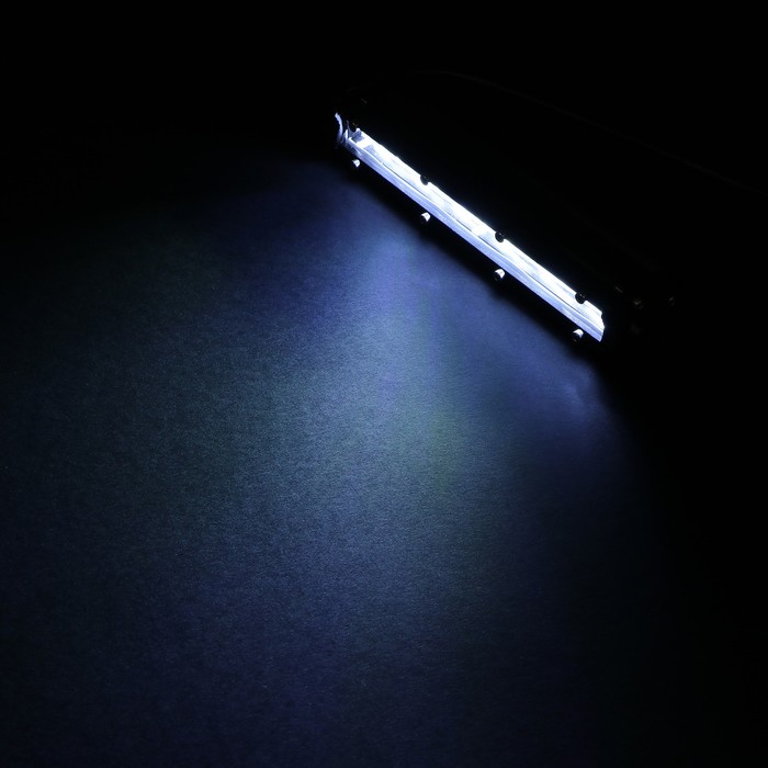 Это светодиодная балка длиной 18,5 см, предназначенная для легковых автомобилей, грузовиков и внедорожников. Она может работать при напряжении сети от 9 до 32 В и имеет общую мощность 18 Вт. Световой поток этой модели составляет 720 Люмен, а провод имеет длину 30 см. Цвет свечения - холодный белый.