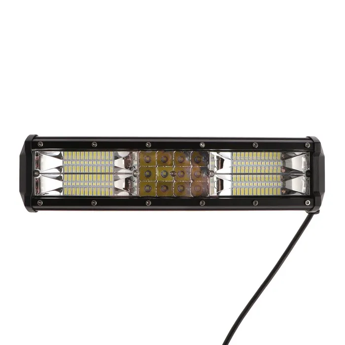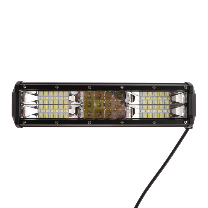 Это светодиодная балка длиной 30.8 см, предназначенная для монтажа в легковых и грузовых автомобилях, внедорожниках. Работает при напряжении сети 9-32В и общей мощностью 180Вт. Световой поток - 4300 Люмен. Провод длиной 40см для удобного подключения. Цвет света - холодный белый.