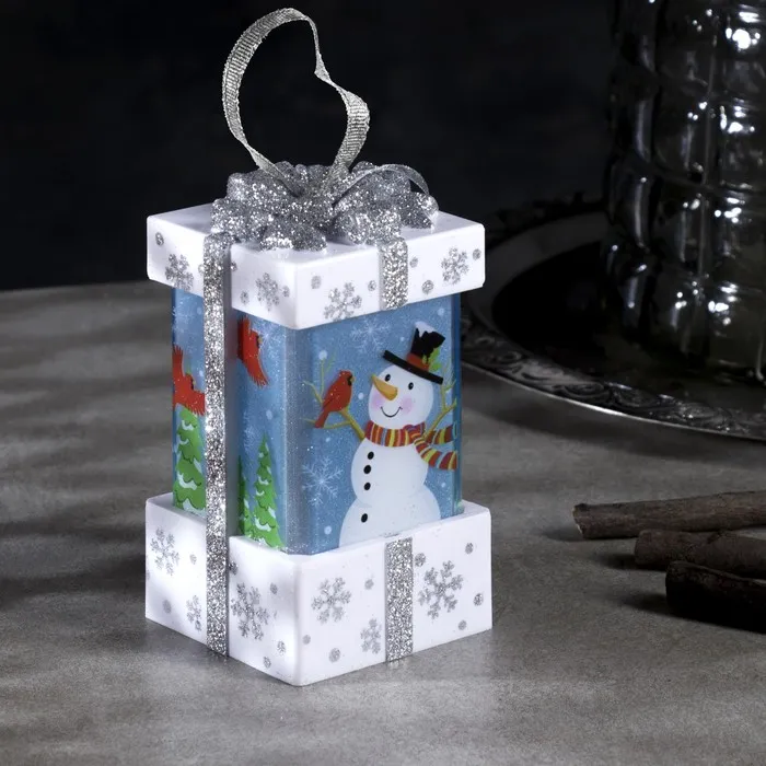 Светодиодная фигура «Белый подарок со снеговиком» 6.3 × 11.5 × 6.3 см, пластик, батарейки АААх3 (не в комплекте), эффект пламени — Характеристики