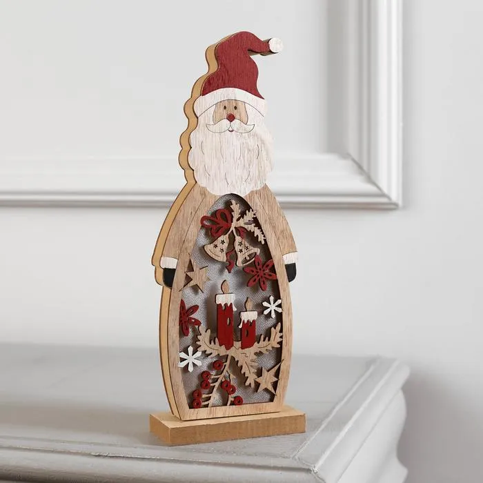 Светодиодная фигура «Дед Мороз» 11 × 28 × 5 см, дерево, батарейки АААх2 (не в комплекте), свечение тёплое белое — Характеристики