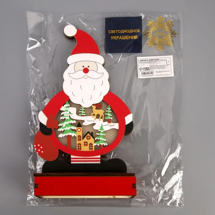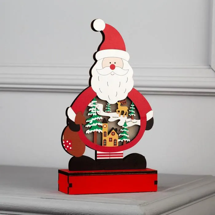 Светодиодная фигура «Дед Мороз» 13 × 14 × 5 см, дерево, батарейки ААх2 (не в комплекте), свечение тёплое белое — Характеристики