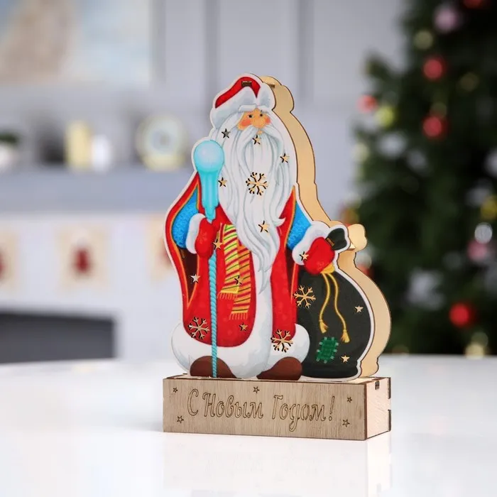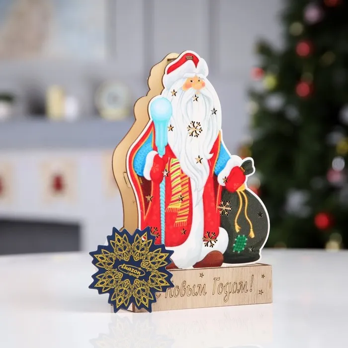 Светодиодная фигура «Дед Мороз» 14 × 20 × 2.5 см, дерево, батарейки LR1130х3 (в комплекте), свечение тёплое белое — Характеристики