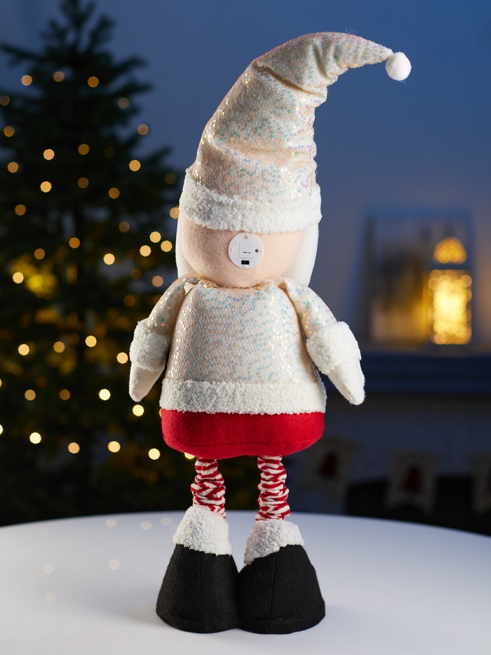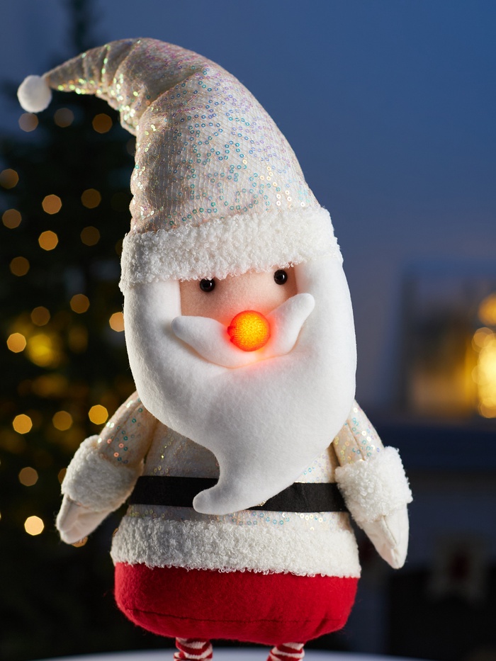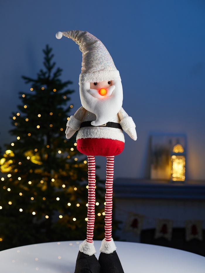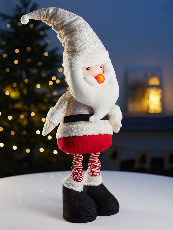 Фигура в форме Деда Мороза с телескопическими ножками высотой от 55 до 84 см станет стильным и функциональным украшением праздничного интерьера. Благодаря регулируемой высоте изделие легко адаптируется к разным пространствам, создавая выразительный акцент и подчёркивая атмосферу уюта и волшебства.