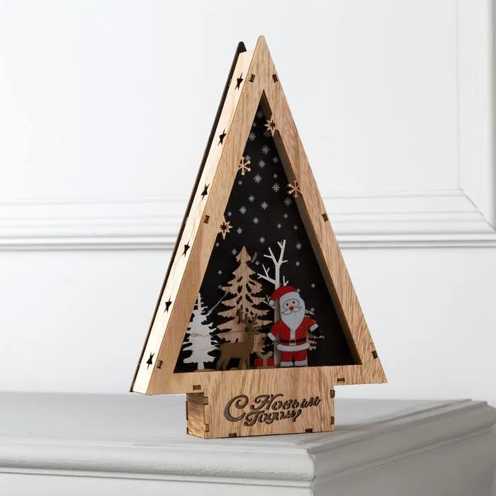 Светодиодная фигура «Дед Мороз и олень» 19 × 30 × 4.5 см, дерево, батарейки АААх2 (не в комплекте), свечение тёплое белое — Характеристики