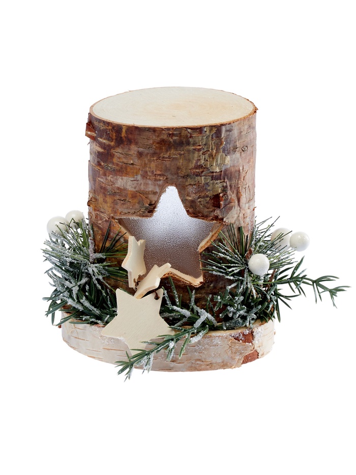 Декоративный деревянный пень с аккуратно встроенным светодиодом — это уникальное сочетание природной эстетики и современных технологий освещения. Его натуральный коричневый оттенок и фактура дерева создают атмосферу тепла и уюта, идеально подходящую для новогоднего интерьера и зимних композиций.