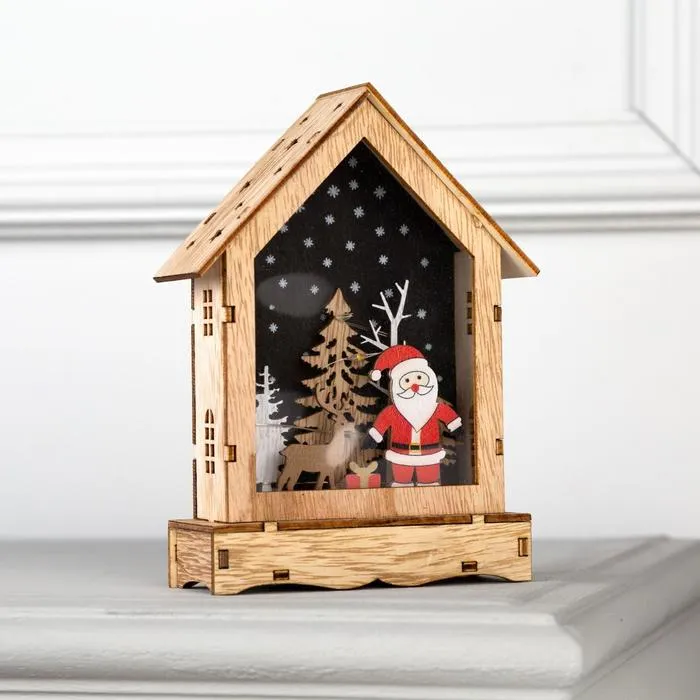 Светодиодная фигура «Дом с Дедом Морозом» 12 × 17 × 4 см, дерево, батарейки АААх2 (не в комплекте), свечение тёплое белое — Характеристики