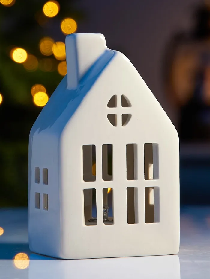 Керамический светящийся домик станет прекрасным украшением вашего новогоднего интерьера, создавая уютную сказочную атмосферу своим тёплым белым светом. Его компактный размер и работа от батареек делают его универсальным и подходящим для размещения в любом уголке вашего дома.