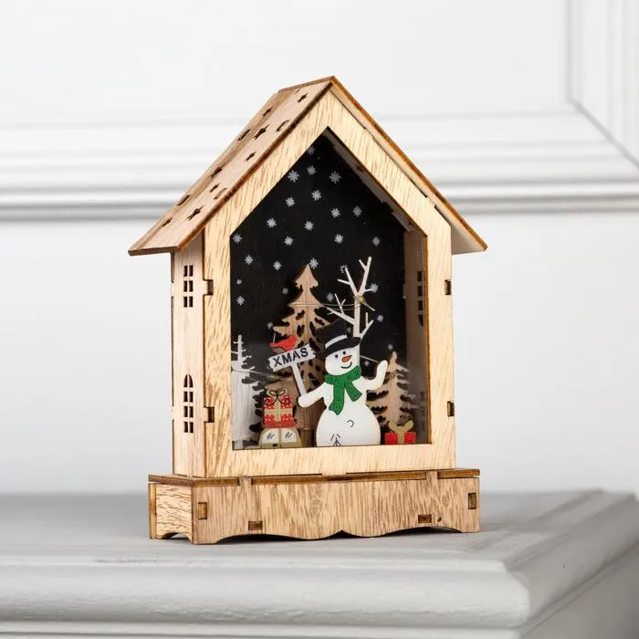 Светодиодная фигура «Дом со снеговиком» 12 × 17 × 4 см, дерево, батарейки АААх2 (не в комплекте), свечение тёплое белое — Характеристики
