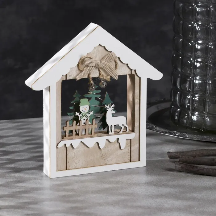 Светодиодная фигура «Дом со снеговиком» 13 × 19 × 3 см, дерево, батарейки АААх2 (не в комплекте), свечение тёплое белое — Характеристики