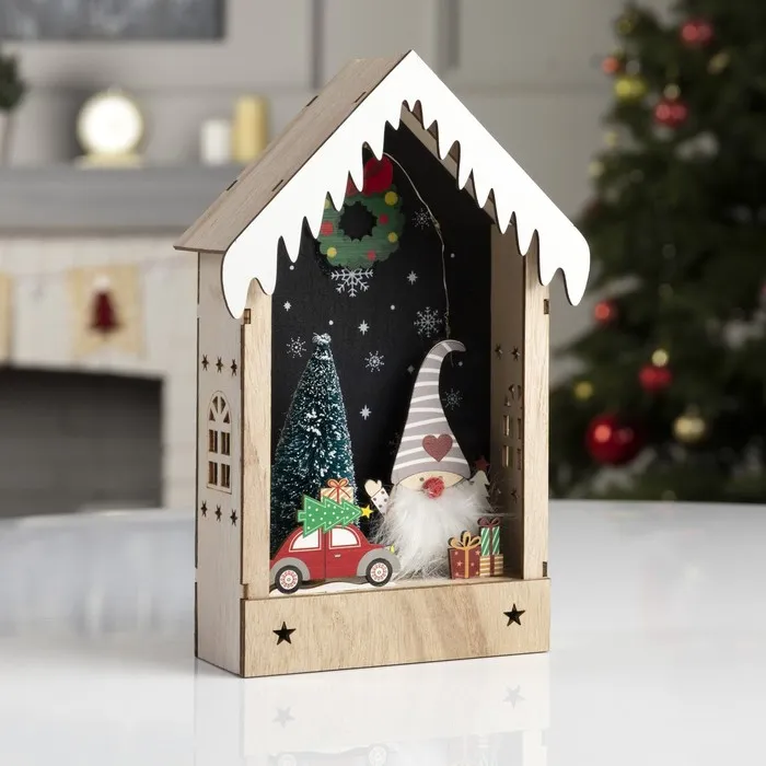 Светодиодная фигура «Домик с эльфом» 14 × 29 × 5.5 см, дерево, батарейки AAAx2 (не в комплекте), свечение тёплое белое — Характеристики