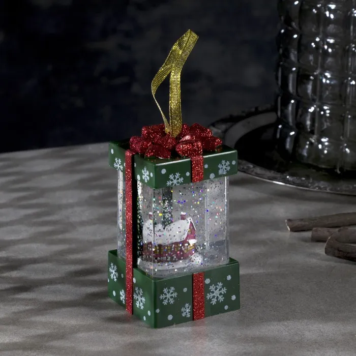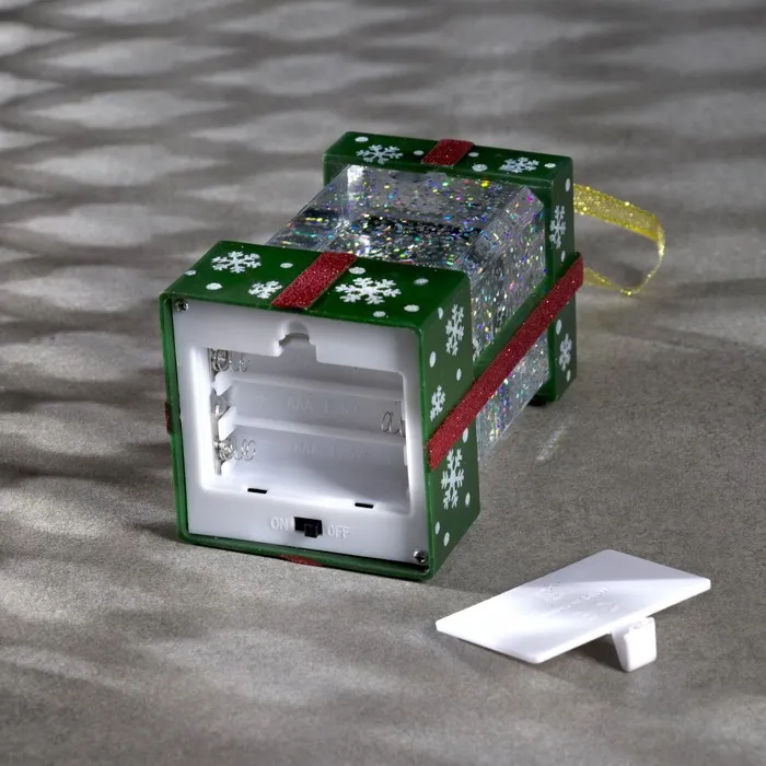 Светодиодная фигура «Домик в зелёном подарке» 6.3 × 11.5 × 6.3 см, пластик, блёстки, батарейки АААх3 (не в комплекте), свечение тёплое белое — Характеристики