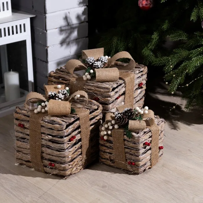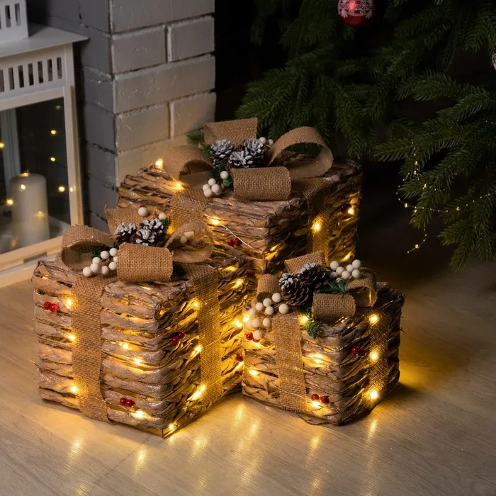 Светодиодная фигура «Эко-подарки» 15, 20, 25 см, текстиль, металл, батарейки ААх2 (не в комплекте), свечение тёплое белое — Характеристики