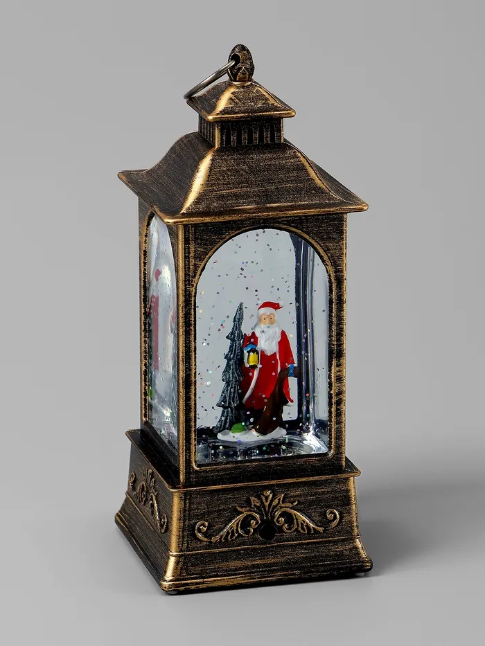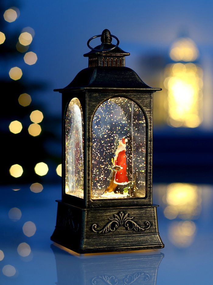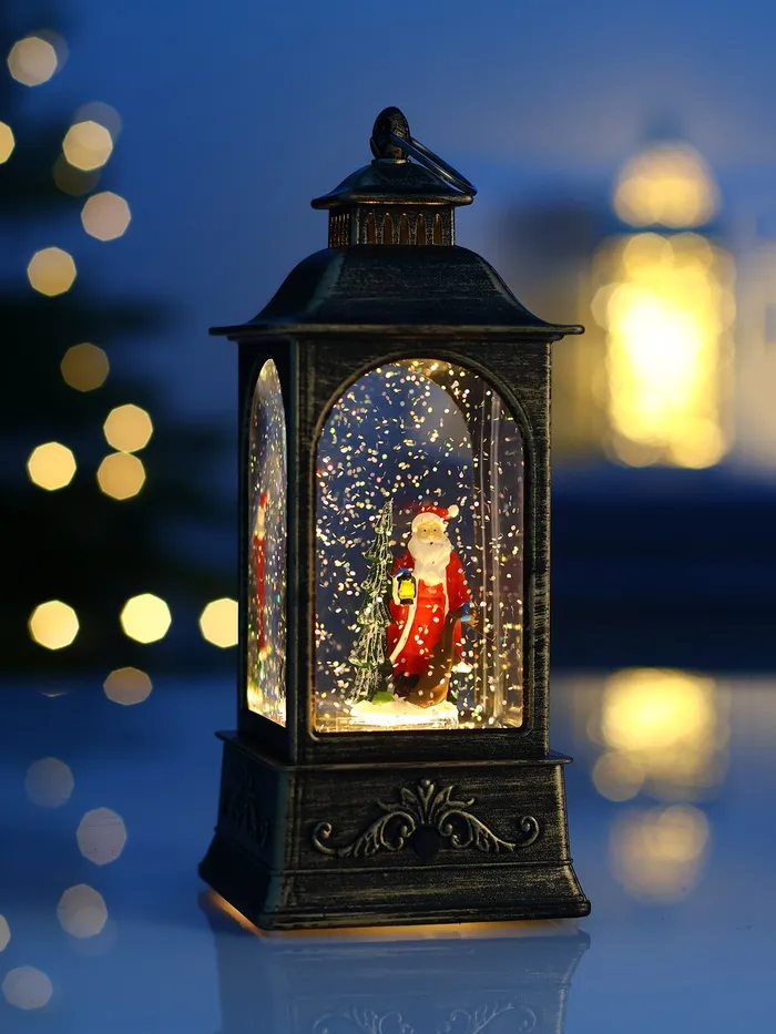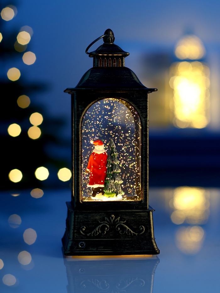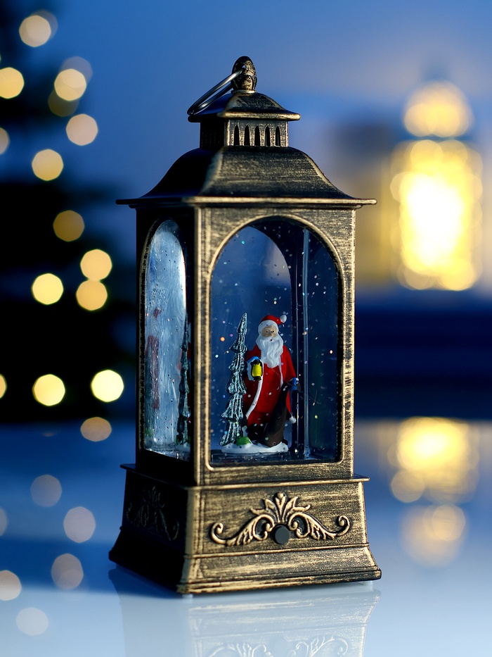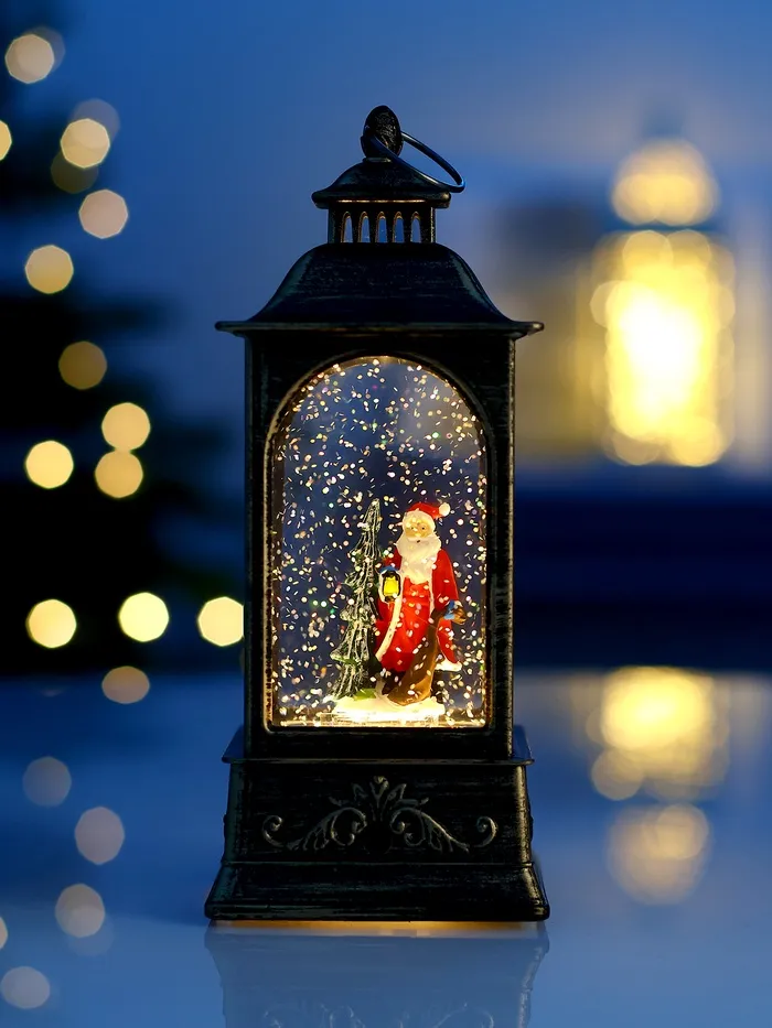 Настольный светильник в образе фонаря с Дедом Морозом объединяет в себе праздничный декор и функциональное освещение, создавая атмосферу уюта и волшебства. Компактные размеры 20 × 9 × 9 см позволяют легко разместить его на столе, комоде или полке, добавляя интерьеру новогоднее настроение.