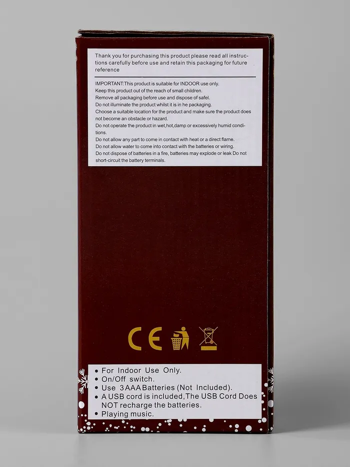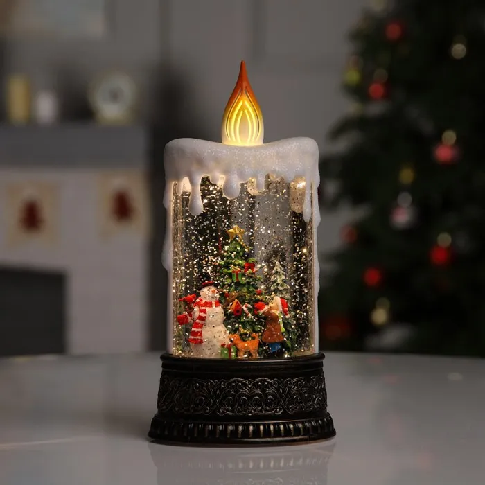 Тёплое белое свечение светодиода мягко освещает фигурку, а эффект снежного вихря добавляет динамики и волшебства.