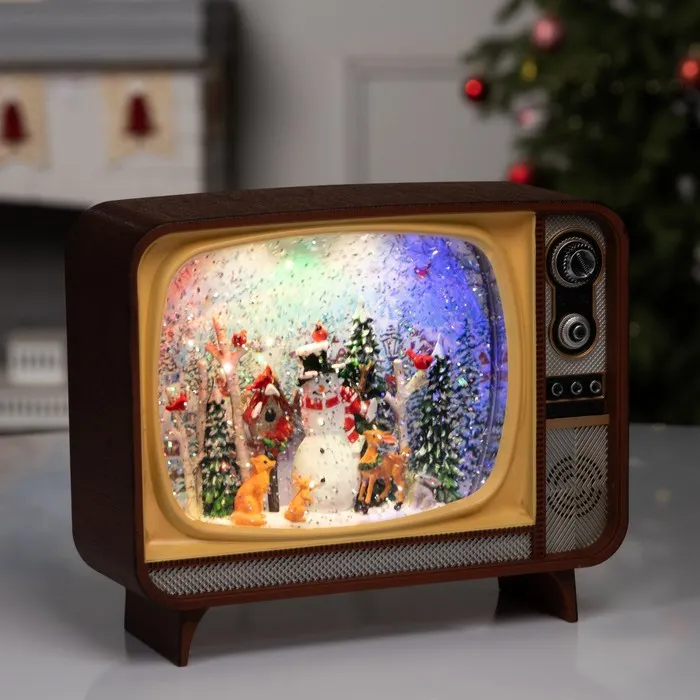 Особенность изделия — эффект снежного вихря, который оживляет композицию внутри прозрачного корпуса, создавая завораживающее движение снежинок.