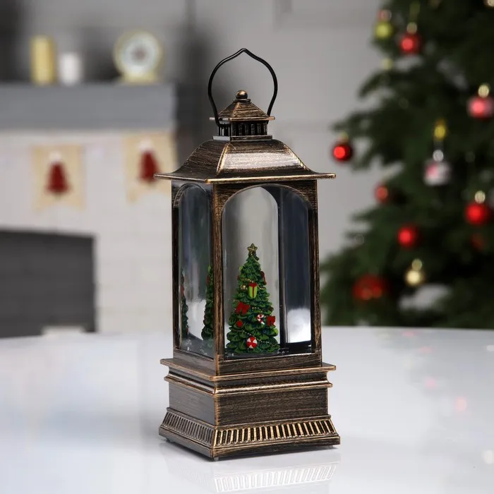 Светодиодная фигура «Фонарь с ёлкой» 7.8 × 19.5 × 7.8 см, пластик, батарейки ААх3 (не в комплекте), USB, свечение тёплое белое — Характеристики