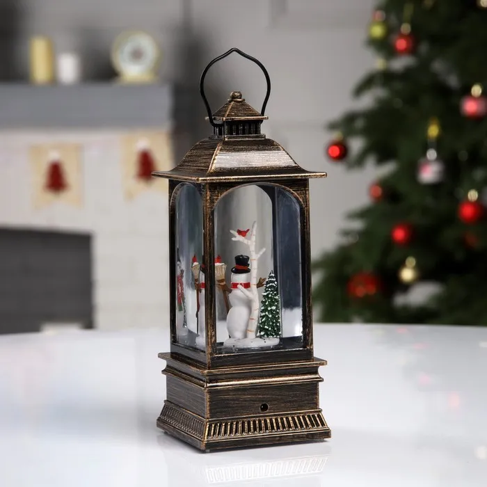 Светодиодная фигура «Фонарь со снеговиком» 7.8 × 19.5 × 7.8 см, пластик, батарейки ААх3 (не в комплекте), USB, свечение тёплое белое — Характеристики