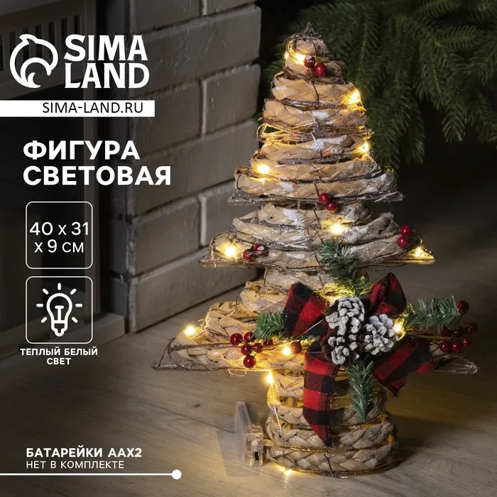 Светодиодная фигура «Ёлка» 38 × 55 × 13 см, металл, текстиль, батарейки ААх2 (не в комплекте), свечение тёплое белое — Характеристики