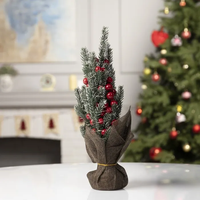 Светодиодная фигура «Ёлка с ягодами», 10 × 33 × 7 см, пластик, батарейки CR2032х2 (в комплекте), свечение тёплое белое — Характеристики