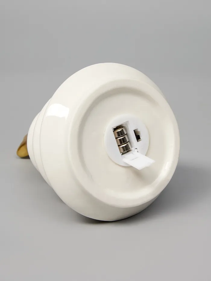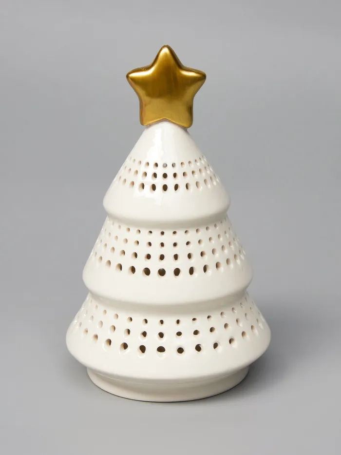 Керамическая ёлочка с золотой звездой наполняет дом атмосферой тепла и уюта. Эта декоративная светодиодная «Ёлочка со звездой» работает от батареек и излучает тёплый белый свет, создавая уютное настроение в праздничные вечера.