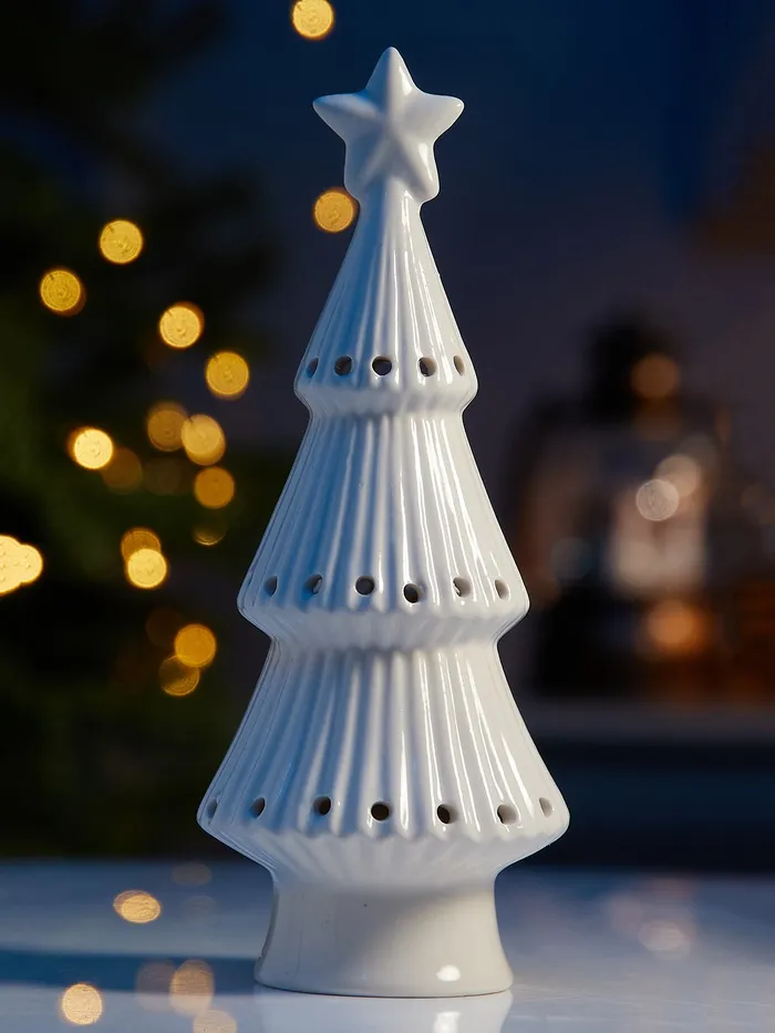 Этот керамический светильник-ёлка помогает создать расслабляющую атмосферу, где бы вы ни находились. Его мягкий свет принесёт праздничное настроение и уют в любое помещение — будь это спальня, гостиная или рабочее пространство.