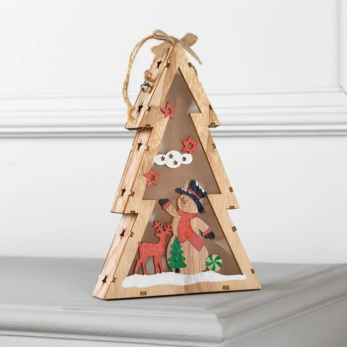 Светодиодная фигура «Ёлка со снеговиком» 14 × 22.5 × 4 см, дерево, батарейки АААх2 (не в комплекте), свечение тёплое белое — Характеристики