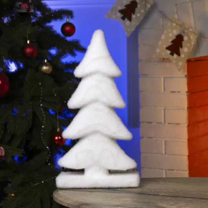 Светодиодная фигура «Ёлочка» 22 × 40 × 12 см, флок, батарейки ААх2 (не в комплекте), свечение тёплое белое