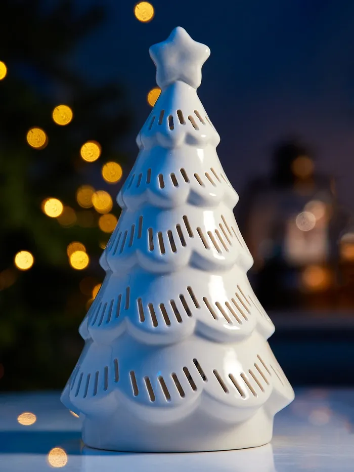 Керамическая светодиодная ёлка станет изящным украшением вашего дома, создавая атмосферу уюта, тепла и новогодней сказки. Работая на батарейках, этот светильник позволяет украсить любую комнату, не требуя доступа к электрической сети.