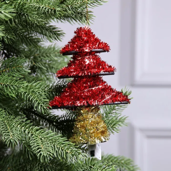 Светодиодная фигура из мишуры «Елочка красная» 17 × 13 см, 10 LED, батарейки AG10х3 (в комплекте), свечение тёплое белое — Характеристики