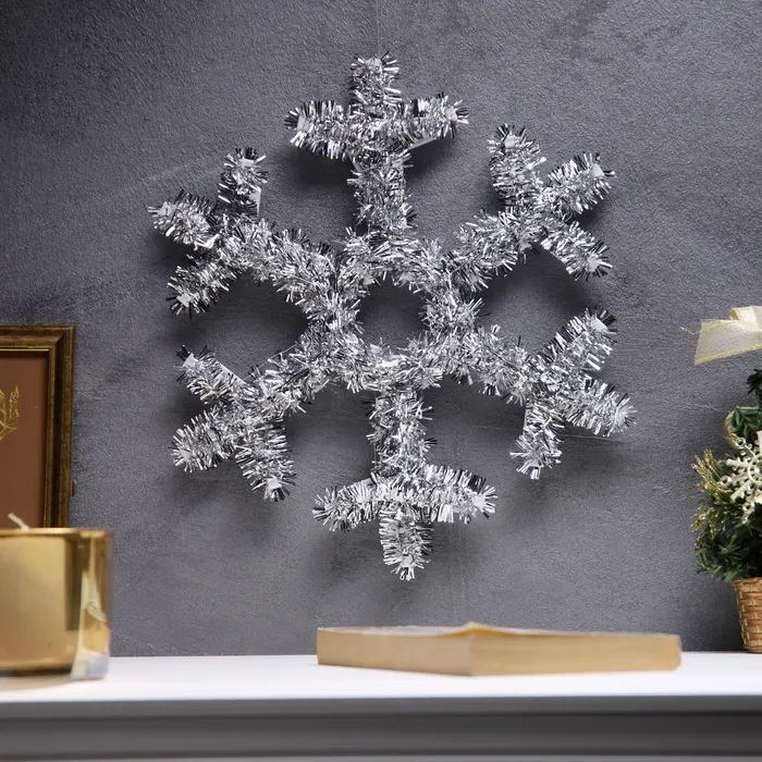 Светодиодная фигура из мишуры «Снежинка серебристая» 32×2 см, 20 LED, батарейки AG10×3 (в комплекте), свечение тёплое белое — Характеристики