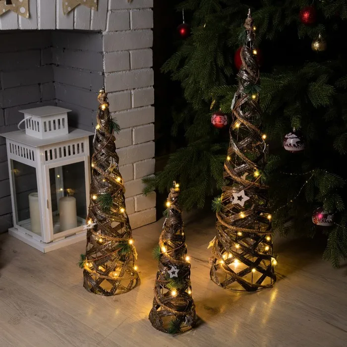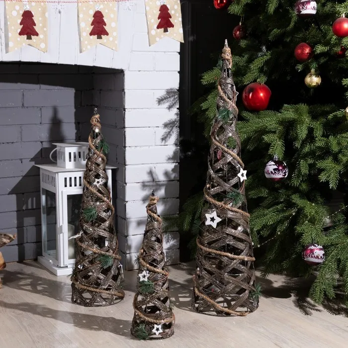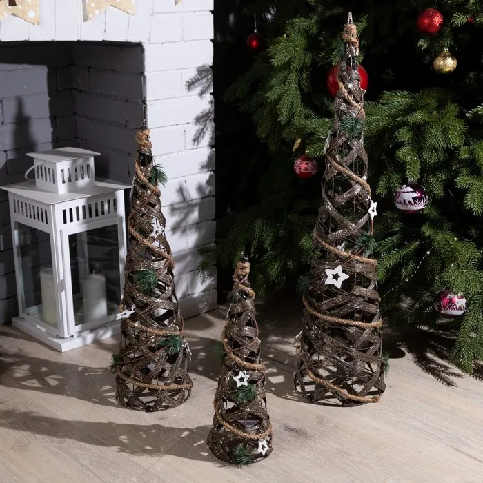 Светодиодная фигура «Конусы плетёные» 40, 60, 80 см, текстиль, металл, батарейки ААх2 (не в комплекте), свечение тёплое белое — Характеристики
