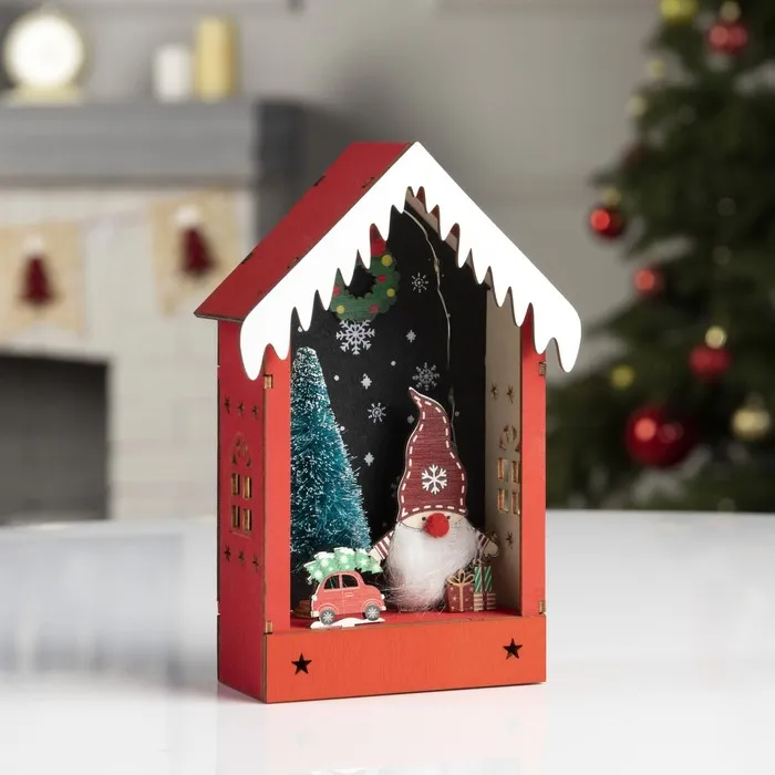Светодиодная фигура «Красная хижина» 10 × 19 × 5 см, дерево, батарейки АААх2 (не в комплекте), свечение тёплое белое — Характеристики