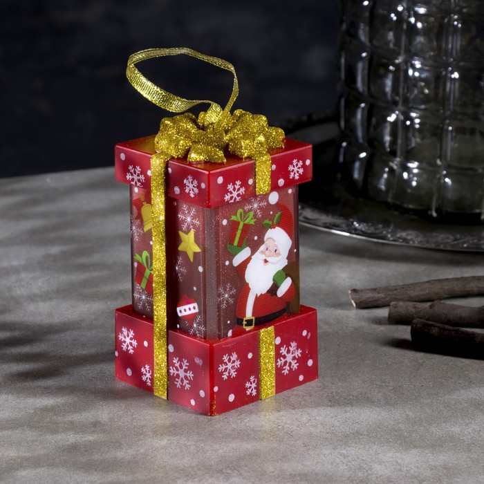 Светодиодная фигура «Красный подарок с Дедом Морозом» 6.3×11.5×6.3 см, пластик, от батареек АААх3, эффект пламени — Характеристики