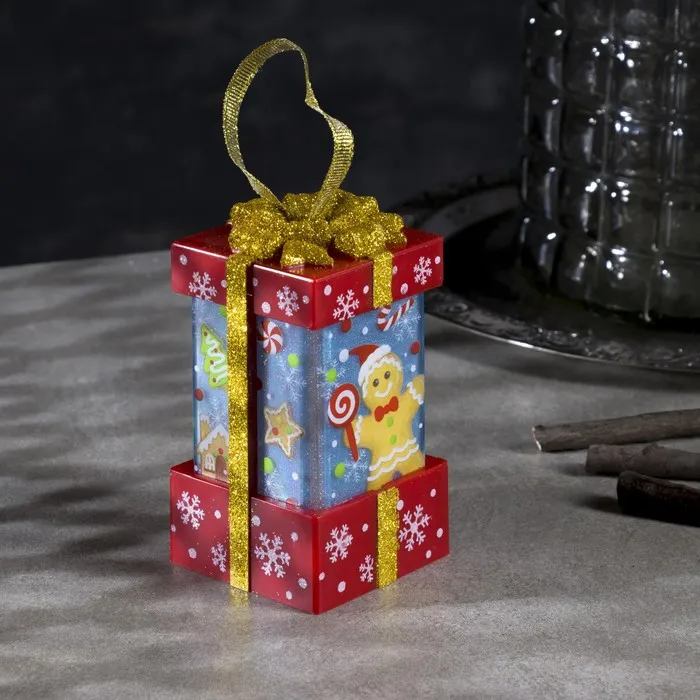 Светодиодная фигура «Красный подарок с пряником» 6.3×11.5×6.3 см, пластик, от батареек АААх3, эффект пламени — Характеристики