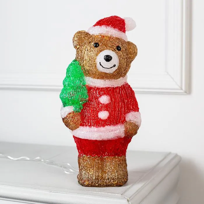 Светодиодная фигура «Медведь с ёлкой» 10 × 30 × 10 см, акрил, 30 LED, 220 В, свечение белое