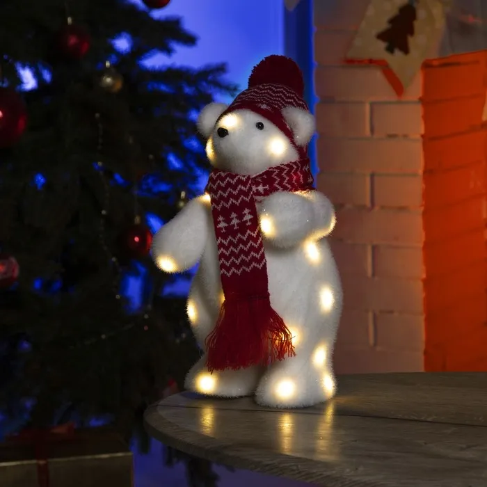 Светодиодная фигура «Медвежонок в бабочке» 9 × 12 × 8 см, флок, батарейки CR2032х2 (не в комплекте), свечение тёплое белое — Характеристики
