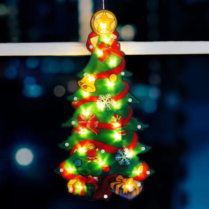 Светодиодная фигура на присоске «Ёлка» 24 × 45 см, пластик, батарейки АААх3 (не в комплекте), свечение тёплое белое — Характеристики