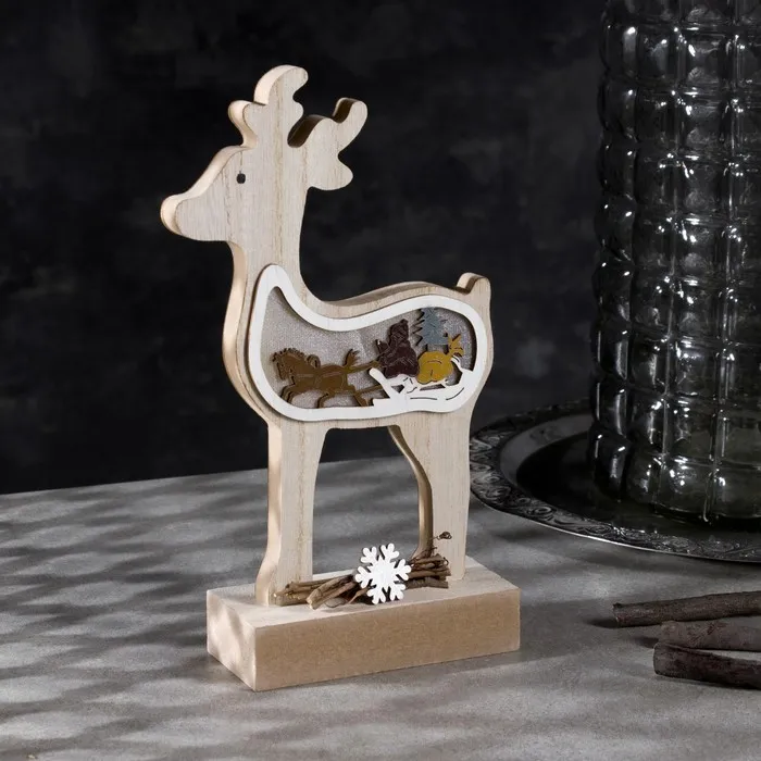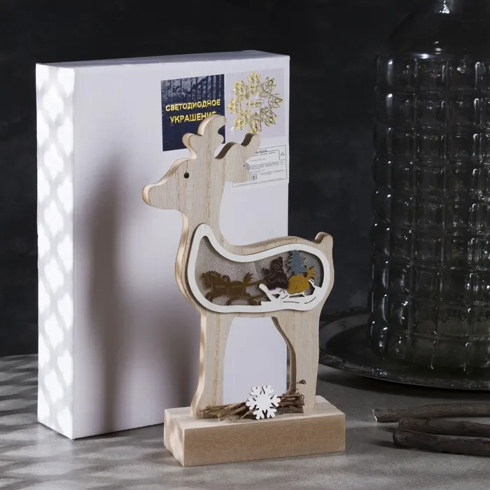Светодиодная фигура «Олень» 12 × 23 × 5 см, дерево, батарейки АААх2 (не в комплекте), свечение тёплое белое — Характеристики