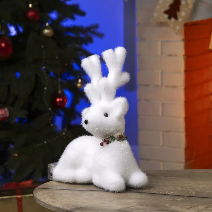 Светодиодная фигура «Олень» 20 × 25 × 12 см, флок, батарейки ААх2 (не в комплекте), свечение тёплое белое — Характеристики