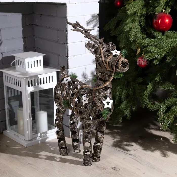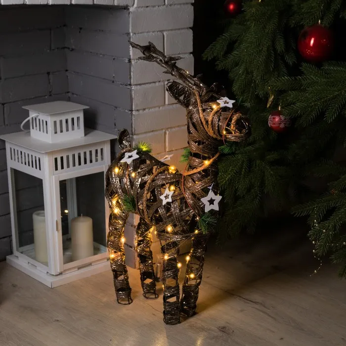Светодиодная фигура «Плетёный олень» 44 × 65 × 15 см, металл, текстиль, батарейки ААх2 (не в комплекте), свечение тёплое белое — Характеристики