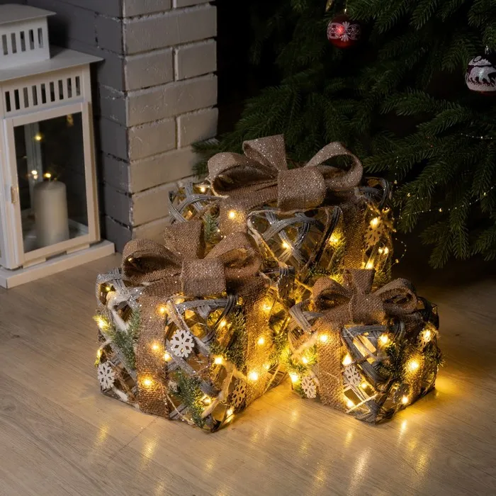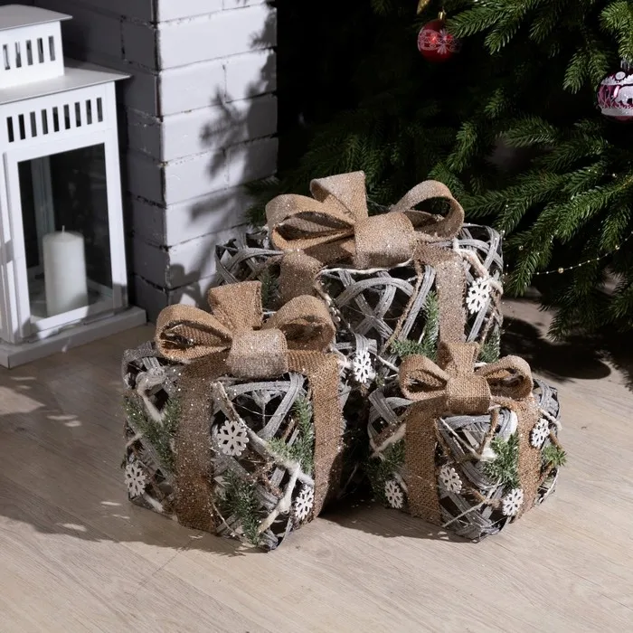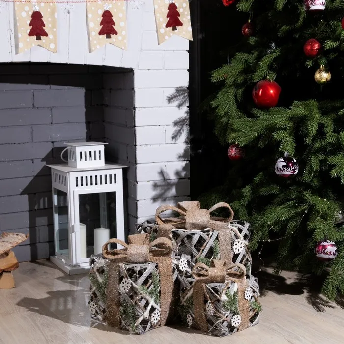 Светодиодная фигура «Подарки с еловой веткой» 15, 20, 25 см, текстиль, металл, батарейки ААх2 (не в комплекте), свечение тёплое белое — Характеристики