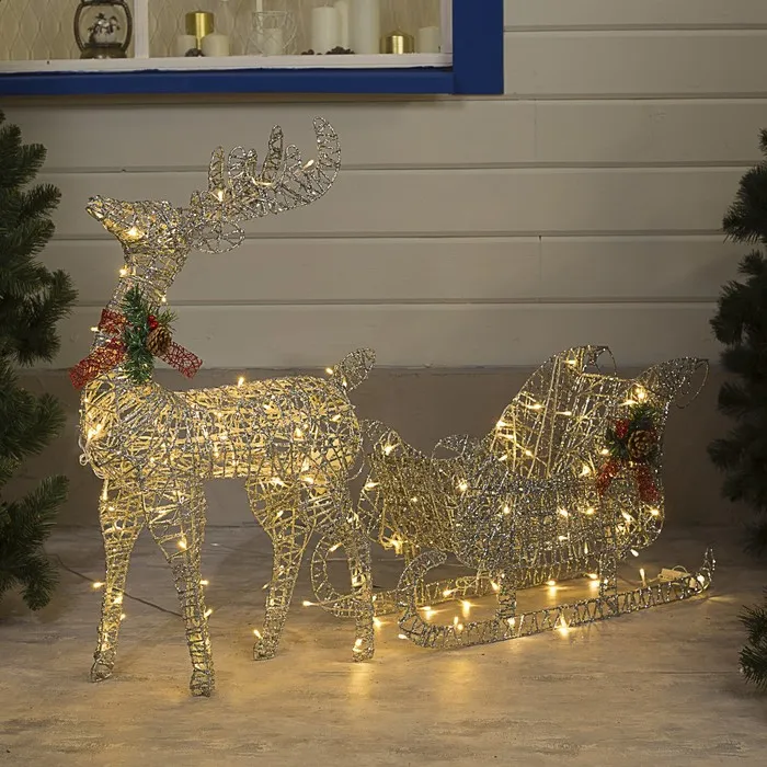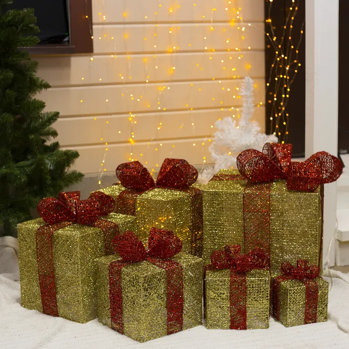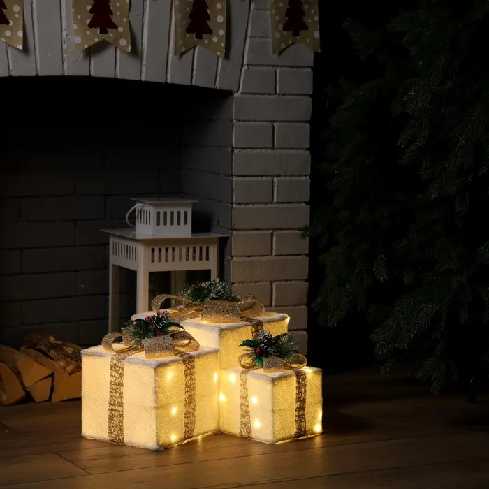 Светодиодная фигура «Подарки с красной лентой» 15, 20, 25, 30, 35, 40 см, текстиль, металл, 220 В, 8 режимов, свечение тёплое белое — Характеристики