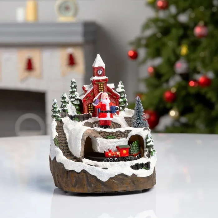 Светодиодная фигура «Поезд и Дед Мороз» 16 × 10 × 12 см, полистоун, батарейки АААх2 (не в комплекте), USB, свечение тёплое белое — Характеристики