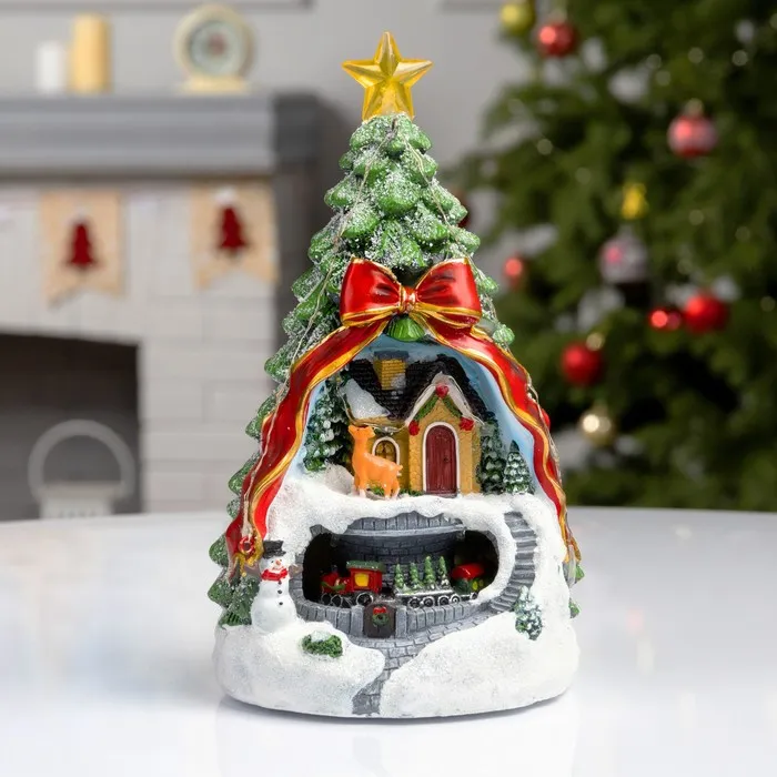 Светодиодная фигура «Поезд и оленёнок» 26 × 14 × 14 см, полистоун, батарейки АААх2 (не в комплекте), свечение мульти — Характеристики