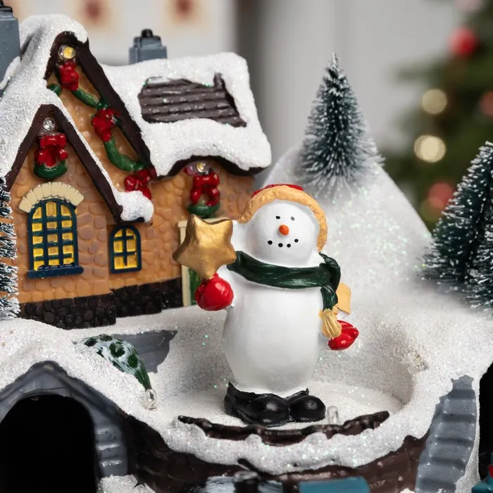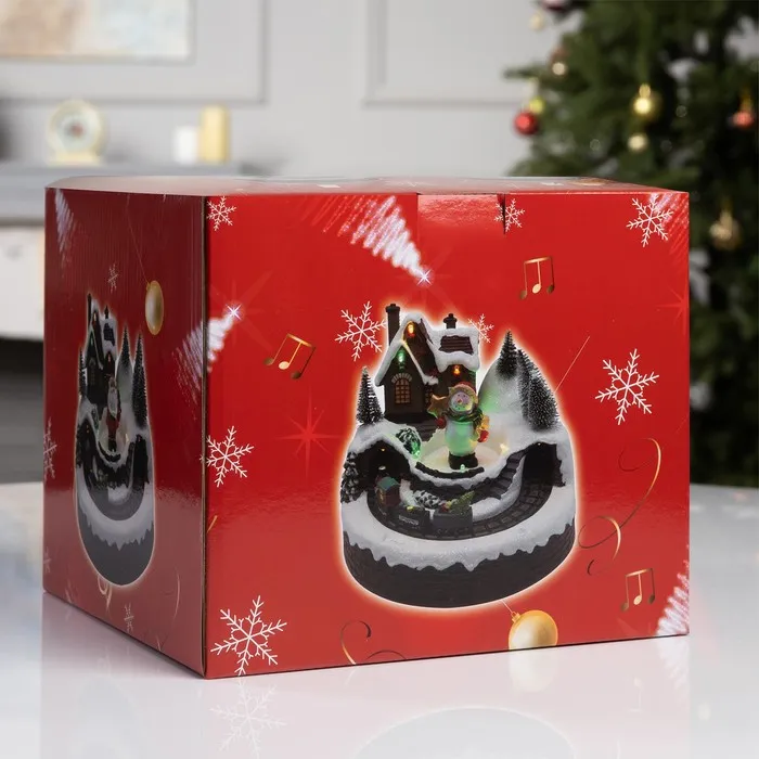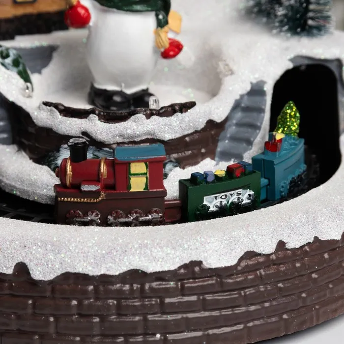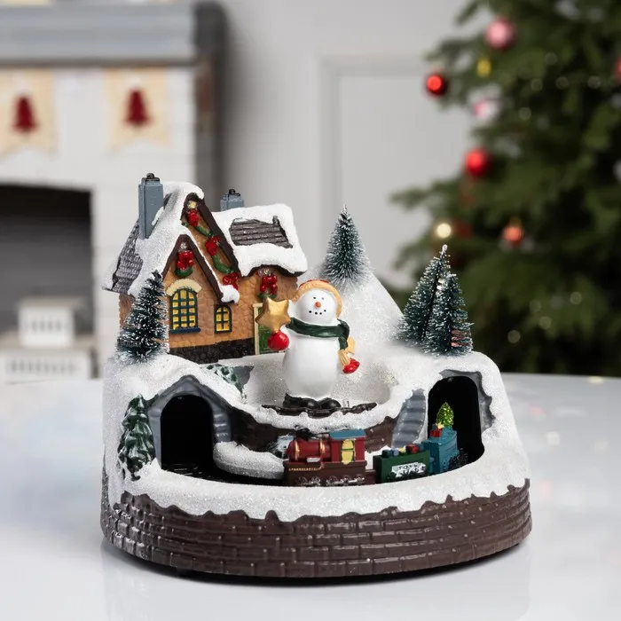 Светодиодная фигура «Поезд и снеговик» 20 × 20 × 16 см, полистоун, батарейки ААх3 (не в комплекте), USB, свечение тёплый белый — Характеристики