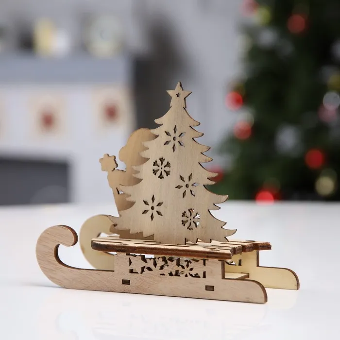 Светодиодная фигура «Сани с Дедом Морозом» 15.5 × 12 × 5.5 см, дерево, батарейки LR1130х3 (в комплекте), свечение тёплое белое — Характеристики