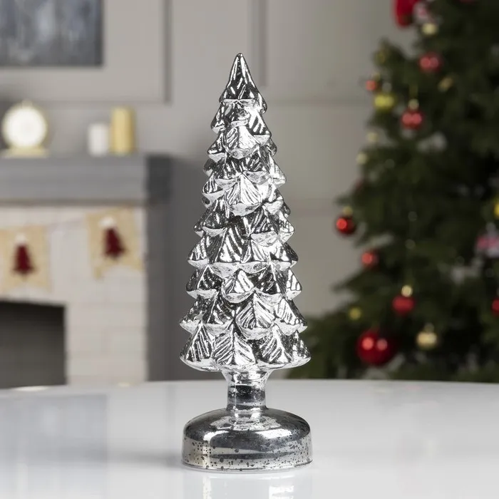 Светодиодная фигура «Серебристая ёлка» 9 × 29 × 9 см, стекло, батарейки АААх3 (не в комплекте), свечение тёплое белое — Характеристики