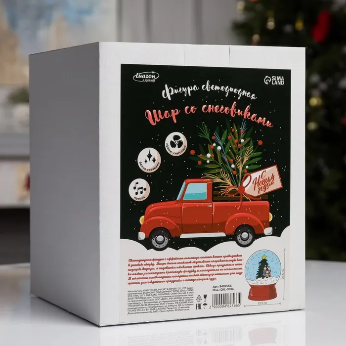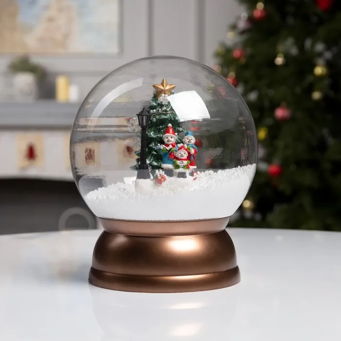 Светодиодная фигура «Шар со снеговиками и ёлкой» 21.5 × 26.5 × 21.5 см, пластик, батарейки ААх3 (не в комплекте), USB, свечение белое — Характеристики