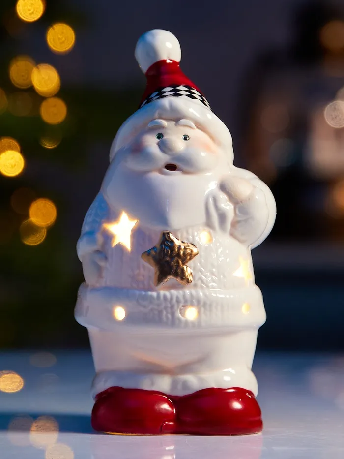 • Освещение: Постоянное свечение в тёплом белом оттенке создаёт уютную атмосферу, идеально подходящую для зимних вечеров и новогодних праздников.