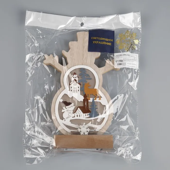 Светодиодная фигура «Снеговичок» 12 × 23 × 5 см, дерево, батарейки АААх2 (не в комплекте), свечение тёплое белое — Характеристики